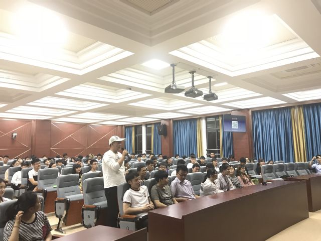 2018 年 5 月 24 日,在智慧树的协助下,我校成功邀请到中国海洋大学创业导师薛艺来校为同学们分享“创践”经验。教务处处长陈祖爵教授和教务处团队全程组织参与。