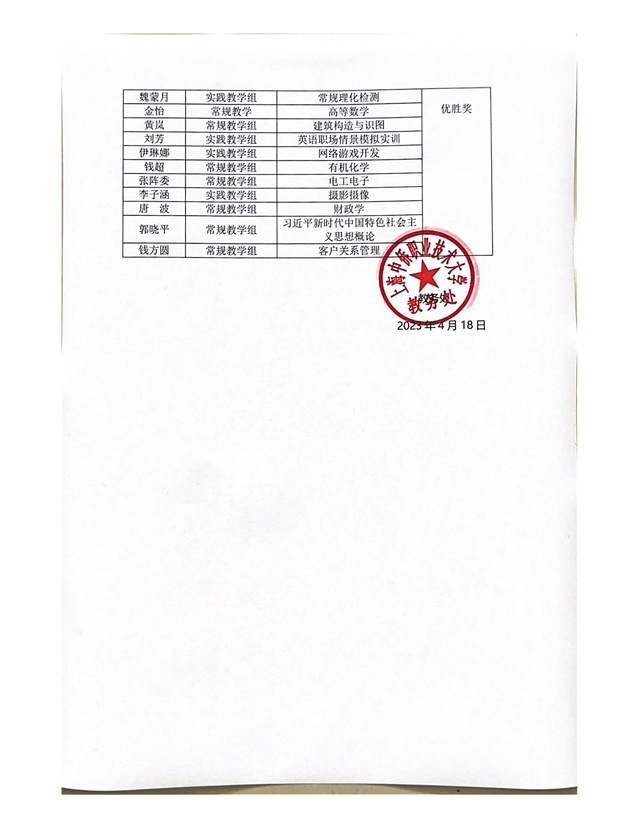 关于2023年教师教学技能大赛获奖名单的公示