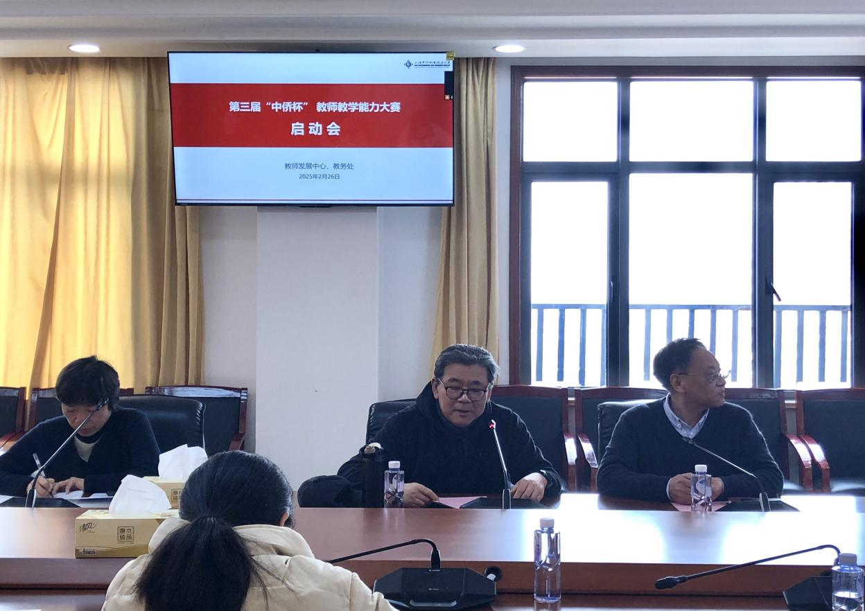为保证第三届“中侨杯”教师教学能力大赛的顺利进行,教师发展中心、教务处于2025年2月26日在图文信息楼518会议室召开本届“中侨杯”大赛启动会,大赛组委会、各二级学院代表以及贯通联盟学校代表等相关人员参与了此次会议。会议采用线上结合线下的模式进行,与会成员共计80余人。