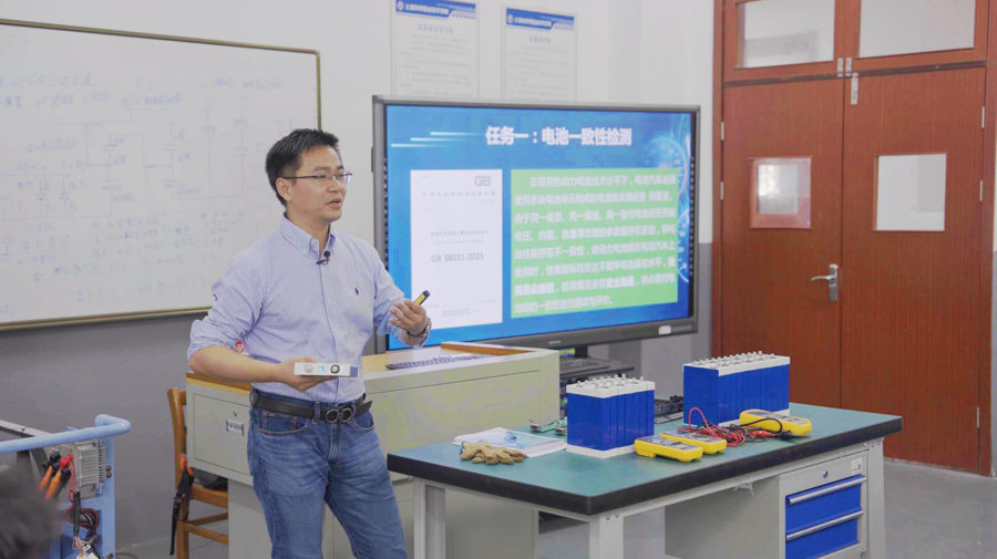 《新能源汽车技术》课程作为汽车服务工程技术专业的一门专业核心课程,对学生学习后续专业课程具有重要支撑作用,在汽车相关的专业人才培养中占有重要的地位。课程设计围绕“汽车强国,有你有我;匠心筑梦,技能成才”的课程思政育人主线展开。基于“岗课赛证”融通理念,课程聚焦新能源汽车机电维修等岗位,根据新能源汽车检测、故障诊断及维修等典型工作任务,对标“1+X”证书制度,瞄准“动力电池检测维修证书”,对接“世界-国家-市”三级职业技能大赛“汽车故障检修”和“汽车营销”赛项,融入新方法、新技术、新工艺和新标准,制定专业人才培养方案和课程标准,创设难度递进的12个任务和7个训练性项目。在授课过程中综合运用DeepSeek大语言模型、VR 虚拟现实等数字技术,深度挖掘产学资源,创建任务驱动型“理虚实”一体化教学体系;精心设计“资讯-计划-决策-实施-检查-评价”六个教学环节,实现“懂技术、会管理、强创新”三维任务目标;以就业为导向,推进学生岗位胜任能力与职业发展潜力融合。